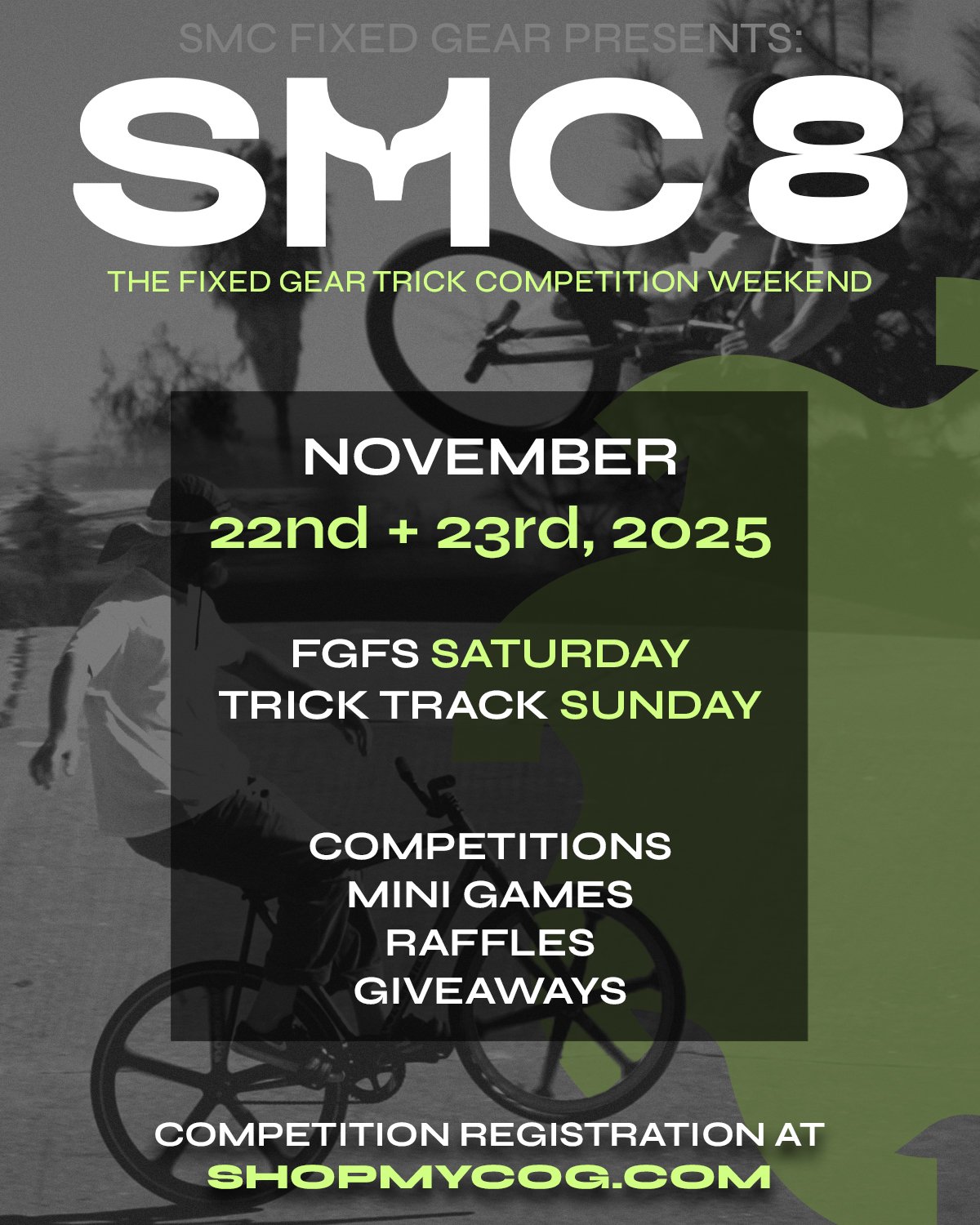 Pre registration for the upcoming Suck My Comp 8 Fixed Gear competitions. One purchase gets you one entry to compete. You do not need to pay if you are just spectating!